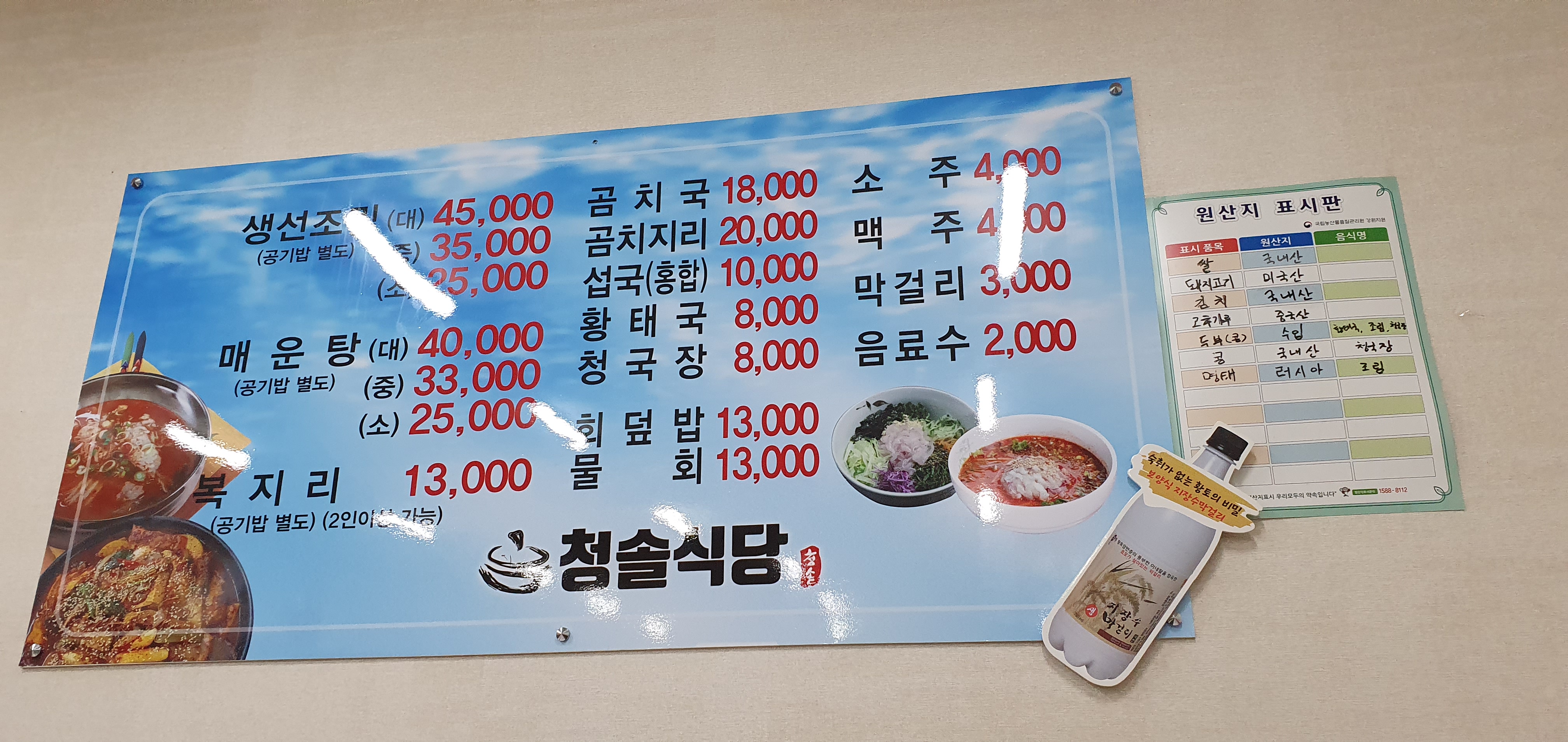 저희가 갔던 초장집 가격정보.